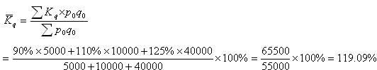 计算结果表明,三种食品的销售量总体上比基期增长了19.09%。由于销售量的增长,使得销售额增加了65500-55000=10500(元)