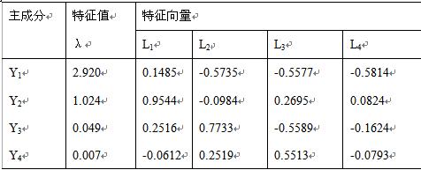 y1=0.1485x1-0.5735x2-0.5577x3-0.5814x4