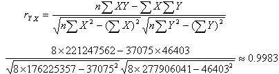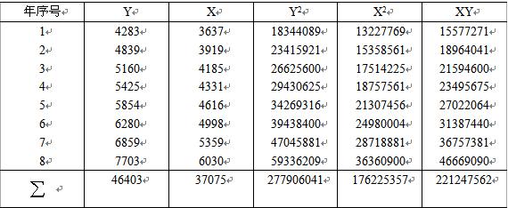 由计算结果可以看出,某市城镇居民1995年―2002年人均可支配收入和人均消费性支出之间的相关系数为0.9983,存在很强的正相关关系。