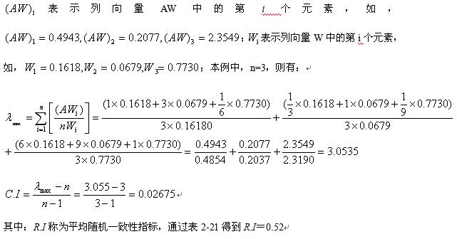 ① 计算随机一致性比率 C.R: C.R=C.I/R.I
