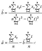 其中的两个参数a和b的估计值 可以根据 的各期观测值与各斯的序号t采用最小平方法得到。
