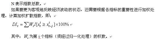 宏观经济的循环波动是通过一系列经济指标的变动反映出来的,任何一个经济指标本身的波动过程都不足以代表宏观经济整体的波动过程。因此,要研究宏观经济的循环波动问题,就必须考虑多个经济指标的波动特点,扩散指数的计算为解决这一问题提供了一个较为有效的工具。