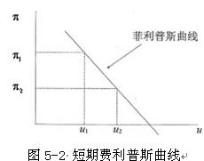 在短期中,经济增长、充分就业与稳定价格水平之间的这种矛盾关系或替代关系可以用短期菲利普斯曲线表示。见图5―2。
