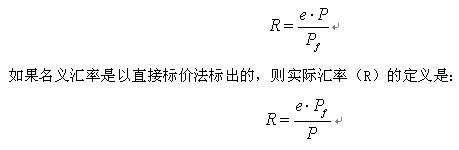 用P和Pf代表国内的价格水平和国外的价格水平,如果名义汇率(e)是以间接标价法标出的,则实际汇率(R)的定义是: