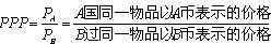 单一价格定律运用于国际市场就是购买力平价理论。实际上,购买力平价理论的名称就已经恰当地表达了它的内涵。因为平价就意味着平等,购买力平价的意思就是1美元或其他任何一种通货在所有的国家都应当具有同等的购买力,这显然是与单一价格定律所表述的内容相一致的。然而在实践中,世界各国并不使用同一种货币,在此情况下,购买力平价的含义就应当用另一种方式表达,即购买相同一件商品在两个国家所需要的货币额之比,这就是购买力平价公式所要表达的意思。于是,单一价格定律将购买力平价与实际汇率联系在了一起。