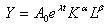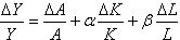 其中Y为产出量,A、K、L分别为技术、资本、劳动等投入要素。