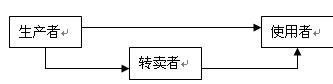 转卖者:生产者和使用者之间的中介,批零贸易业。