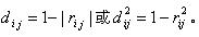 一般在利用相关系数表示类间相似程度时,要将其变换为距离d,以便维持距离越小则关系越密切的含义,可以取