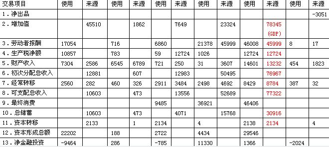 一是部门内部平衡关系,即在每一部门之下,来源列与使用列相关项目合计相等,以表达部门内部各种收入来源与分配和消费投资等支出之间的平衡关系,以及在此平衡关系基础上推导得到的经济总量指标。