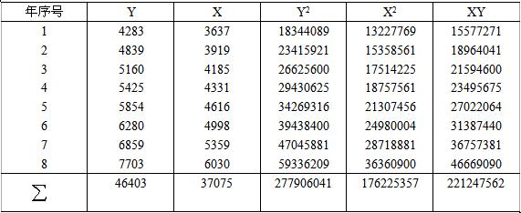 表3-2 相关系数计算表
