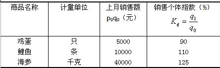 例5: 已知某市场三种食品食品情况如表4-4所示。计算三种食品的销售量总指数。