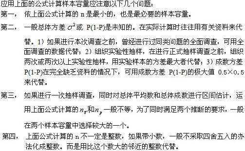 (4)抽样方法与组织形式。一般在同样条件下,重复抽样需要多抽取样本,此外,抽样单位数目的多少还取决于不同的抽样组织形式。一般分层抽样和等距抽样可以比纯随机抽样需要的样本单位数少,整群抽样比纯随机抽样需要的样本单位数多。