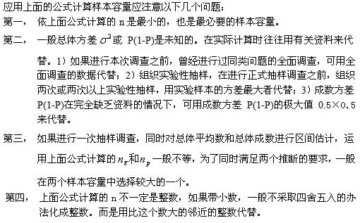 (4)抽样方法与组织形式。一般在同样条件下,重复抽样需要多抽取样本,此外,抽样单位数目的多少还取决于不同的抽样组织形式。一般分层抽样和等距抽样可以比纯随机抽样需要的样本单位数少,整群抽样比纯随机抽样需要的样本单位数多。