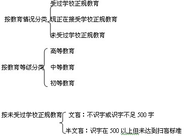 初等(或中等、高等)文化教育程度人口所占比重=受初等(或中等、高等)教育人口数/人口总数×100%