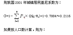根据表2-4中的数据,计算各组家庭数占调查总户数的比重(Pi)、各组收入占总收入的比重(Wi)、各组收入占总收入的累计比重(Qi),在此基础上依方法一计算基尼系数。各项计算结果列在表2-5中。
