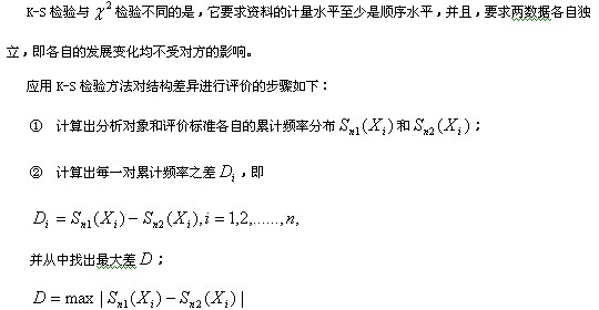 柯尔莫哥洛夫-斯米尔诺夫检验(以下简称K-S检验)是用累计次数或累计频率来判断两组数据之间是否存在显著差异的方法。