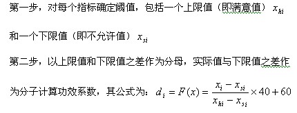 第三步,运用所求出的各个功效系数对每个指标进行函数化处理,将指标实际值转化为用百分制表示的数值。