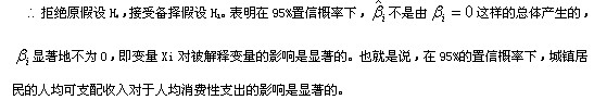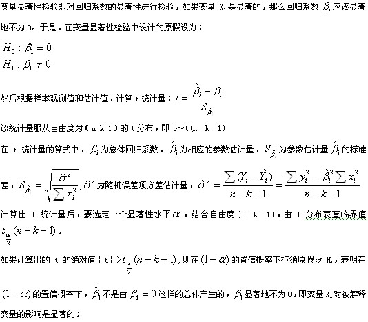 对于多元线性模型,如果方程的总体线性关系是显著的,并不能说明每个解释变量对被解释变量的影响都是显著的,必须对每个解释变量进行显著性检验,以决定是否将其作为解释变量保留在模型中。如果某个变量对被解释变量的影响并不显著,应该将它剔除,以建立更为简单的模型。这就是变量显著性检验的任务。