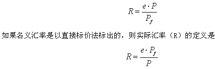用P和Pf代表国内的价格水平和国外的价格水平,如果名义汇率(e)是以间接标价法标出的,则实际汇率(R)的定义是: