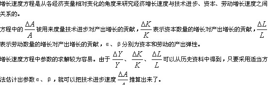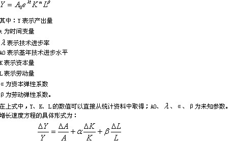 其中Y为产出量,A、K、L分别为技术、资本、劳动等投入要素。
