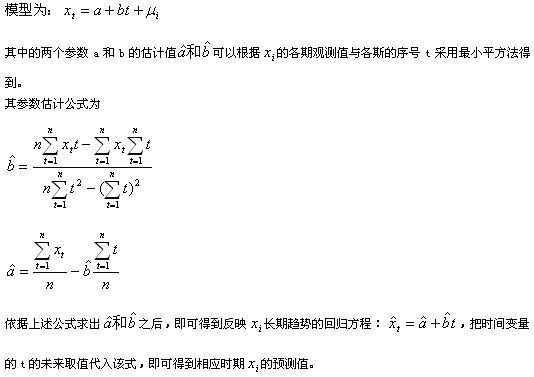 时间变量回归模型是应用回归分析的原理,将时间序列中的时间因素(t)作为自变量(解释变量),所要描述的经济变量作为因变量(被解释变量)而建立的模型。其总体