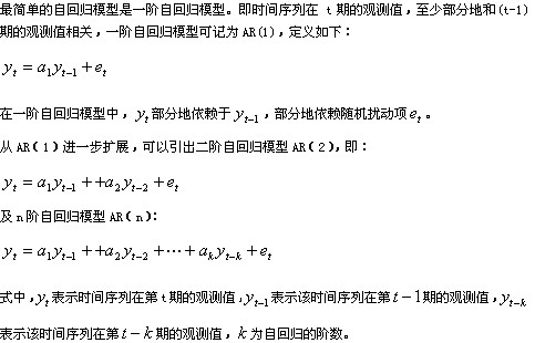 自回归模型考虑的是时间序列第t期的观测值与前若干期的观测值之间的线性回归关系。