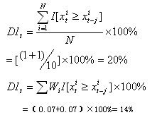 如果要更为客观地反映经济波动的状态,还需要根据各指标的重要性进行加权处理,计算加权扩散指数,即: