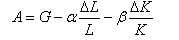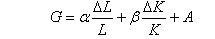 设经济增长率为G,劳动增长率为ΔL/L,资本增长率为ΔK/K,技术进步率为A,则有下列关系式: