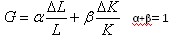 假如不存在生产要素效率的提高,经济增长完全依靠生产要素投入数量的增加,即在粗放型增长的条件下,经济增长率的高低就完全取决于生产要素增长率即劳动增长率和资本增长率的高低,于是就有下列方程式: