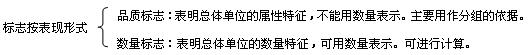 ② 标志有不能用数值表示的品质标志和能用数值表示的数量标志两种,而指标都必须是能用数值表示的。