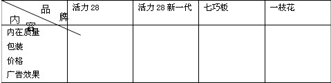 消费者购买动机调查的较好形式之一是问卷调查,品种是城乡居民普遍消费的洗衣粉,品牌重点选择了湖北生产的活力28,活力28新一代,七巧板和一枝花,调查对象是××市所属各市、县、区的城乡居民。