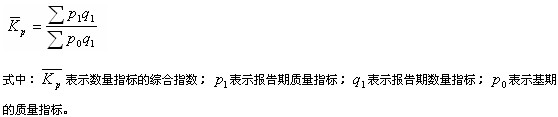 在计算质量指标综合指数时,以能够使质量过渡到可以相加的数量指标为同度量因素,并通常将其固定在报告期的水平上,质量指标综合指数计算公式如下: