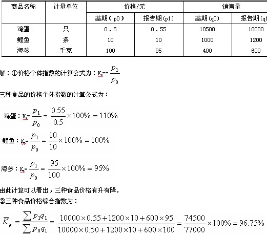 现以商品价格综合指数的编制为例,说明质量指标综合指数的编制方法。