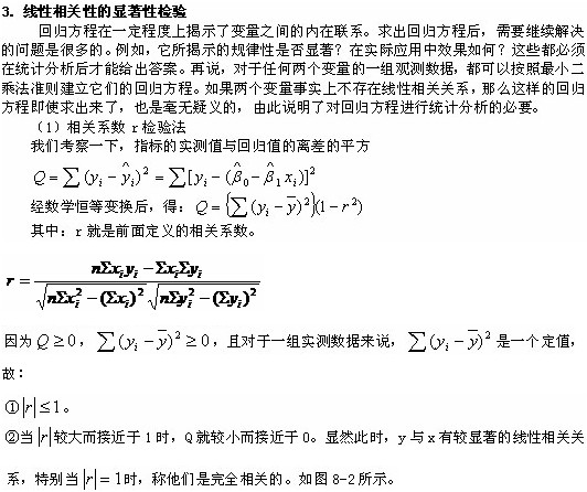 相关系数r是衡量x与y线性相关程度的指标。一般教材中都会附有《相关系数显著性检验表》,表中给出的是相关系数绝对值的临界值。当计算出的变量x与y的相关系数绝对值大于表中临界值时,才可以判定x与y有线性关系。