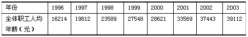 表3-3 某厂全体职工1996-2003年间各年的人均年收入