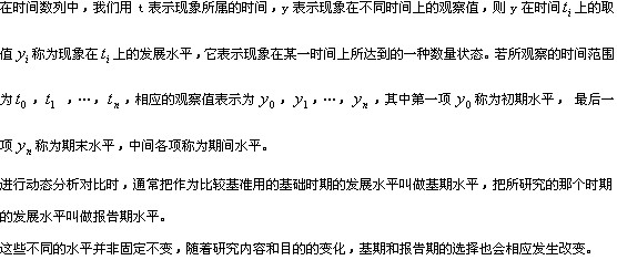 在绝对数时间数列中,发展水平就是绝对数;在相对数时间数列中,发展水平就是相对数或平均数。