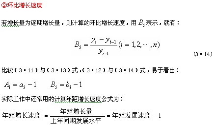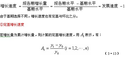 表中发展速度中,定基和环比分别采用公式(3?11)和(3?12)求出;增长速度中,定基与环比分别采用公式(3?13)和公式(3?14)求出。