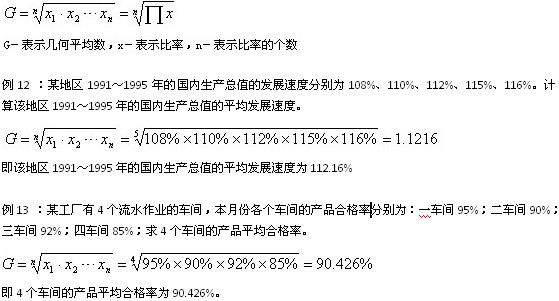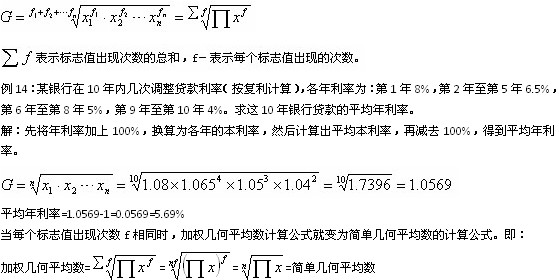 若总体中每个比率不只现出一次,计算几何平均数采用加权几何平均数,公式如下: