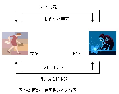 假设分析:如果在国民经济活动中,只有住户和企业,二者运行图如下。