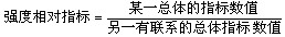 (3)强度相对指标:是两个性质不同而又有一定联系的指标对比的结果,可以表明事物现象的强度、密度、普遍程度等。