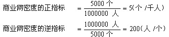 正指标的数值愈大,表示零售商业网密度愈大,它是从正方向说明现象的密度;逆指标的数值愈大,表示零售商业网密度愈小,它是从相反方向说明现象的密度。