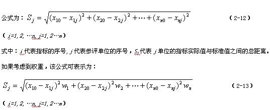 将参评单位看作n维空间中由n个参评指标值确定的点,计算它们与n个标准值确定的标准点之间的距离。