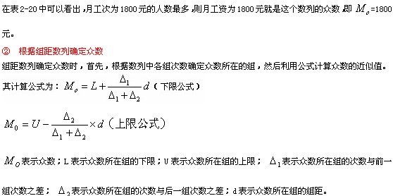 确定众数,首先将数据资料进行分组,编制次数分布数列,然后根据数据的不同种类,采用不同的方法。