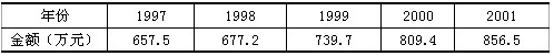 表3-15 1997-2001年各年份外销订单金额表