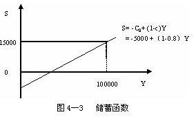 在一个纵轴为储蓄,横轴为收入的坐标中,可以得到一条斜率为正的储蓄曲线。如图4―3所示。