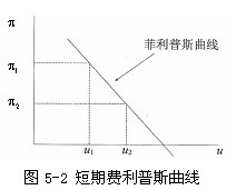 在短期中,经济增长、充分就业与稳定价格水平之间的这种矛盾关系或替代关系可以用短期菲利普斯曲线表示。见图5―2。