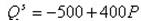 供给函数所要表明的是,当价格发生变化时,商品的供给量将向相同的方向发生多大的变动。例如,当δ=-500,γ=400时,供给函数为: