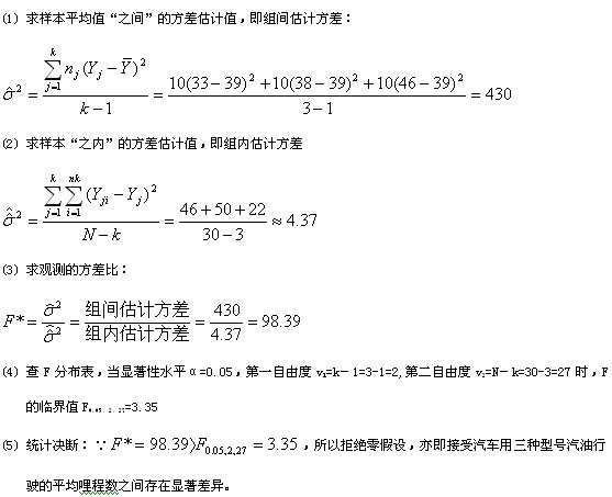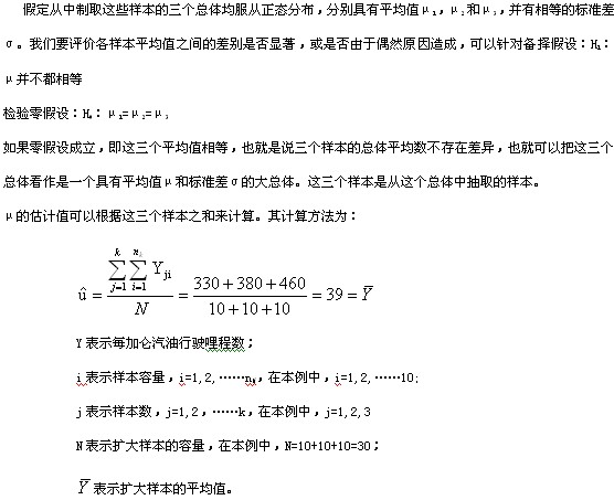 下面结合合理来说明如何运用方差分析法,对均值的差异进行显著性评价。