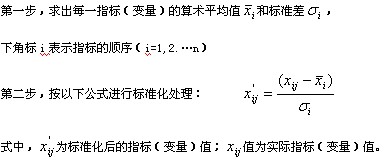 标准化处理方法是统计中一种常用的消除量纲影响的方法。这种方法在假定变量服从正态分布的前提下,将变量值转化为数学期望为0,方差为1的标准化数值,从而达到同度量的效果。标准化处理的具体步骤如下: