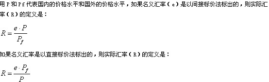 汇率有名义汇率和实际汇率之分。名义汇率是人们可以用一国货币交换另一国货币的比率,是没有考虑两国价格因素的汇率。实际汇率是用同一种货币来度量的国内价格水平与国外价格水平的比率,即人们可以用一国的物品和服务与另一国的物品和服务进行交易的比率。